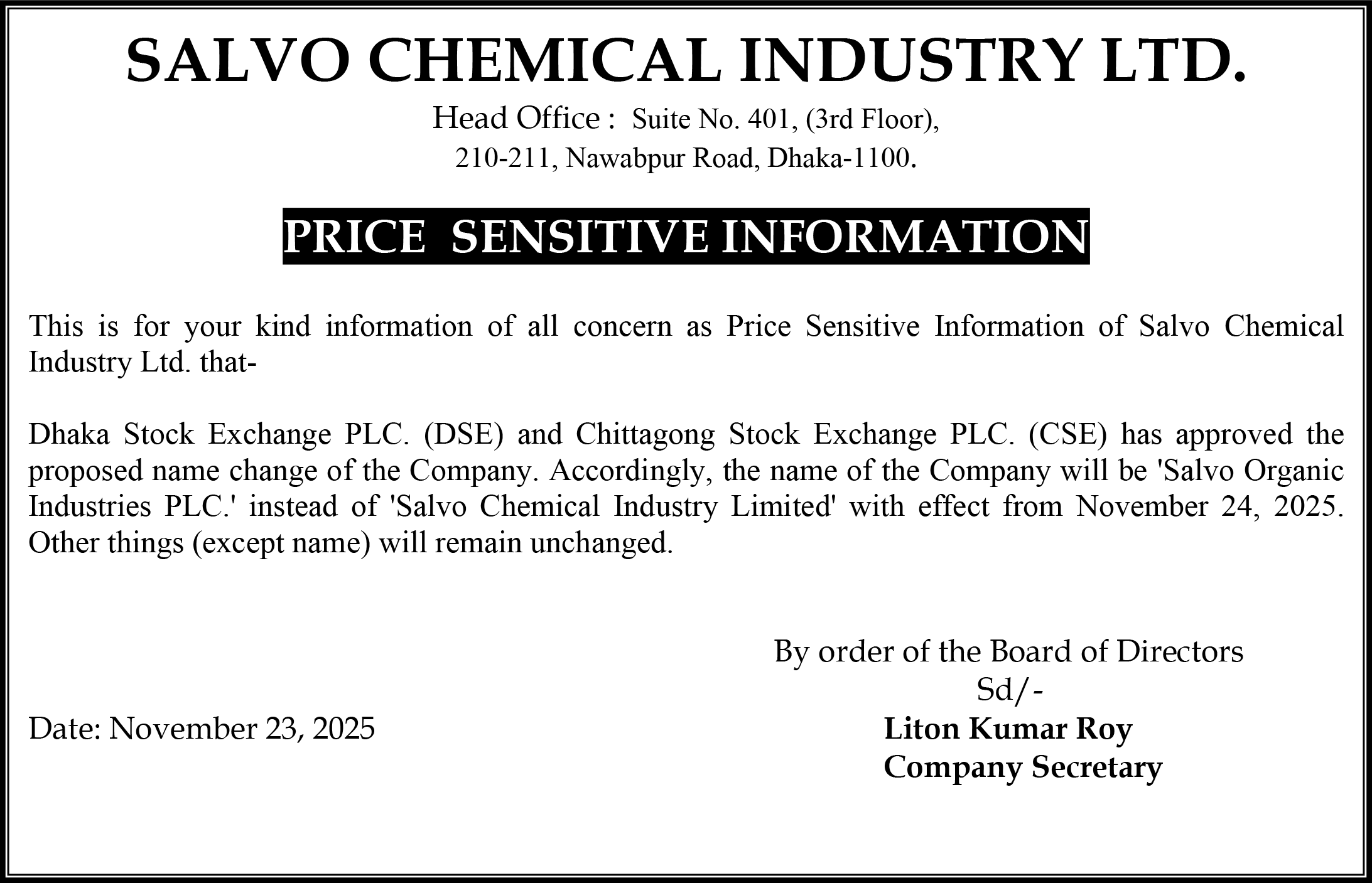 Salvo Chemical Industries Ltd.