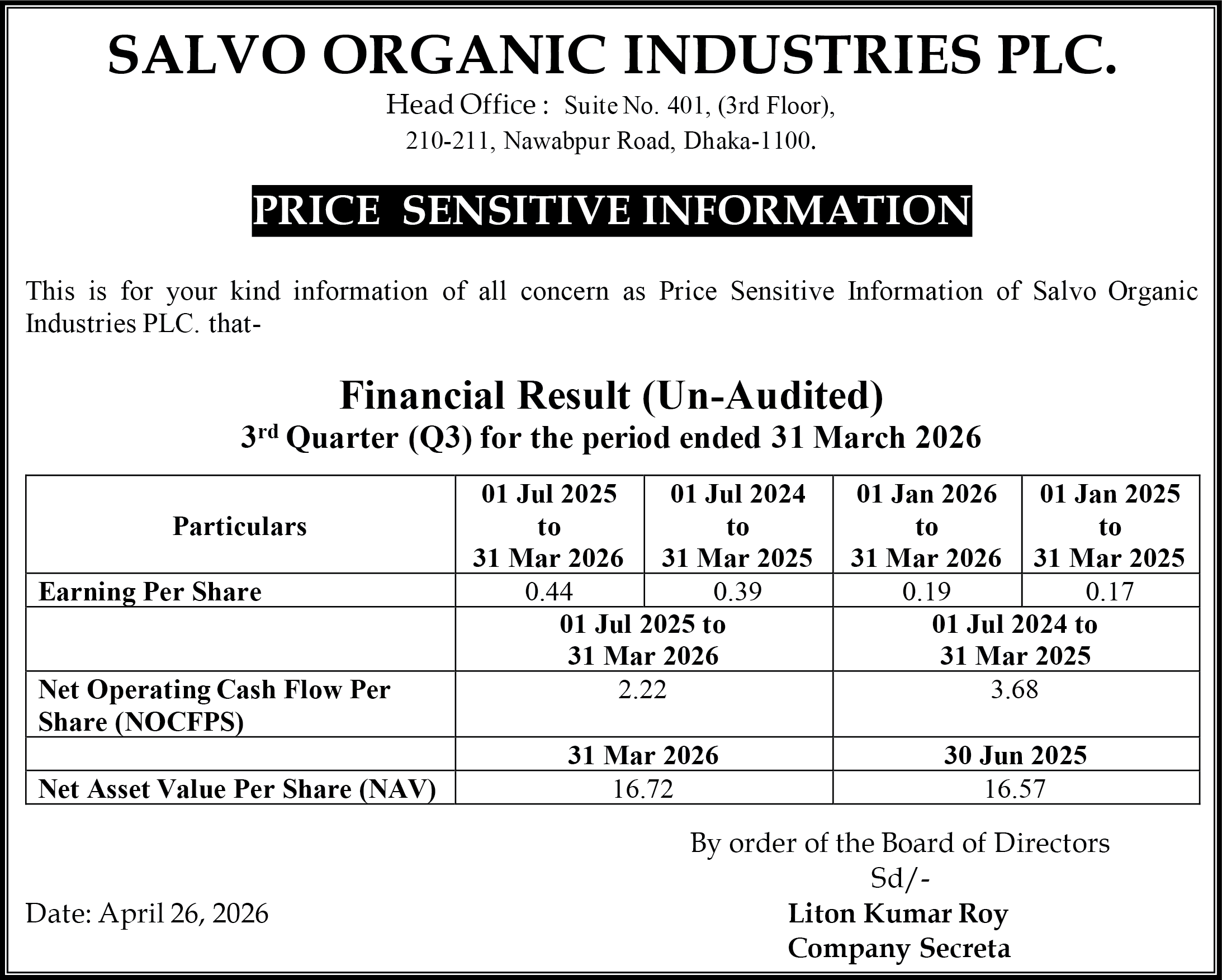 Price Sensitive Information